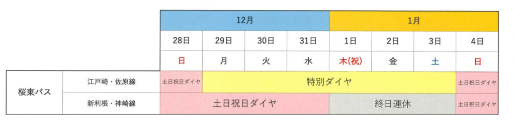 年末年始は、曜日にかかわらず特別ダイヤにて運行します。